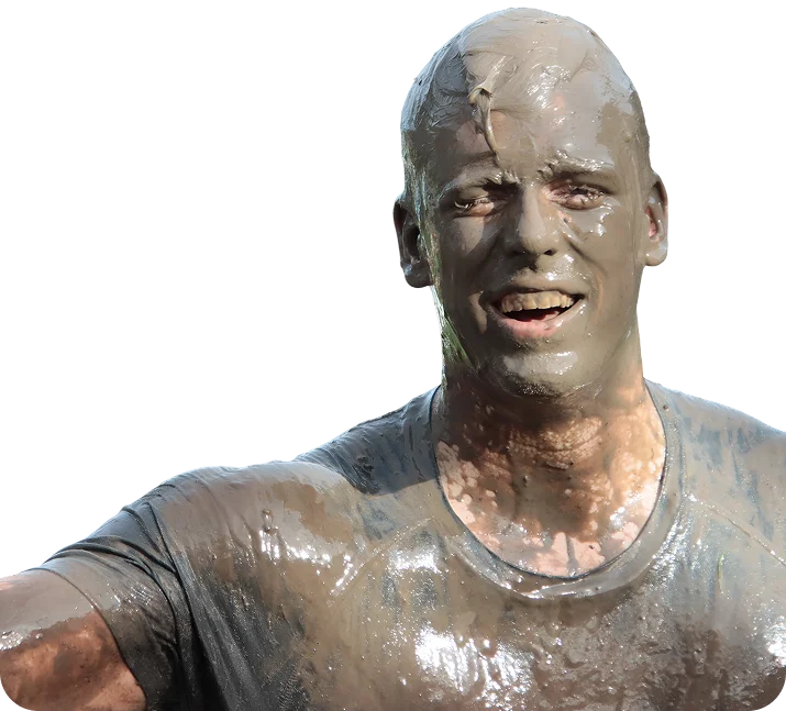 Het parcours is ongeveer 7,5 kilometer (11 jaar en ouder) lang en zit vol modder, water en uitdagende obstakels. Voor de leeftijd van 7-11 hebben we een parkour van 3,5 kilometer.